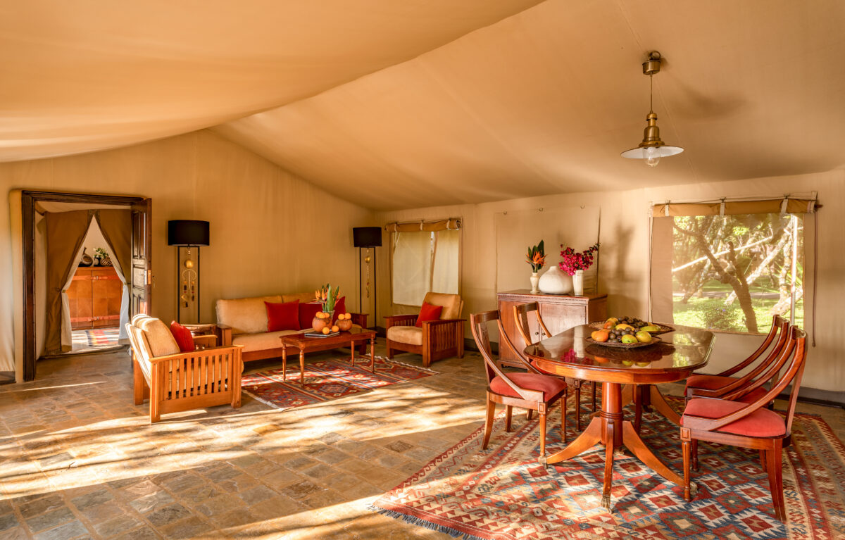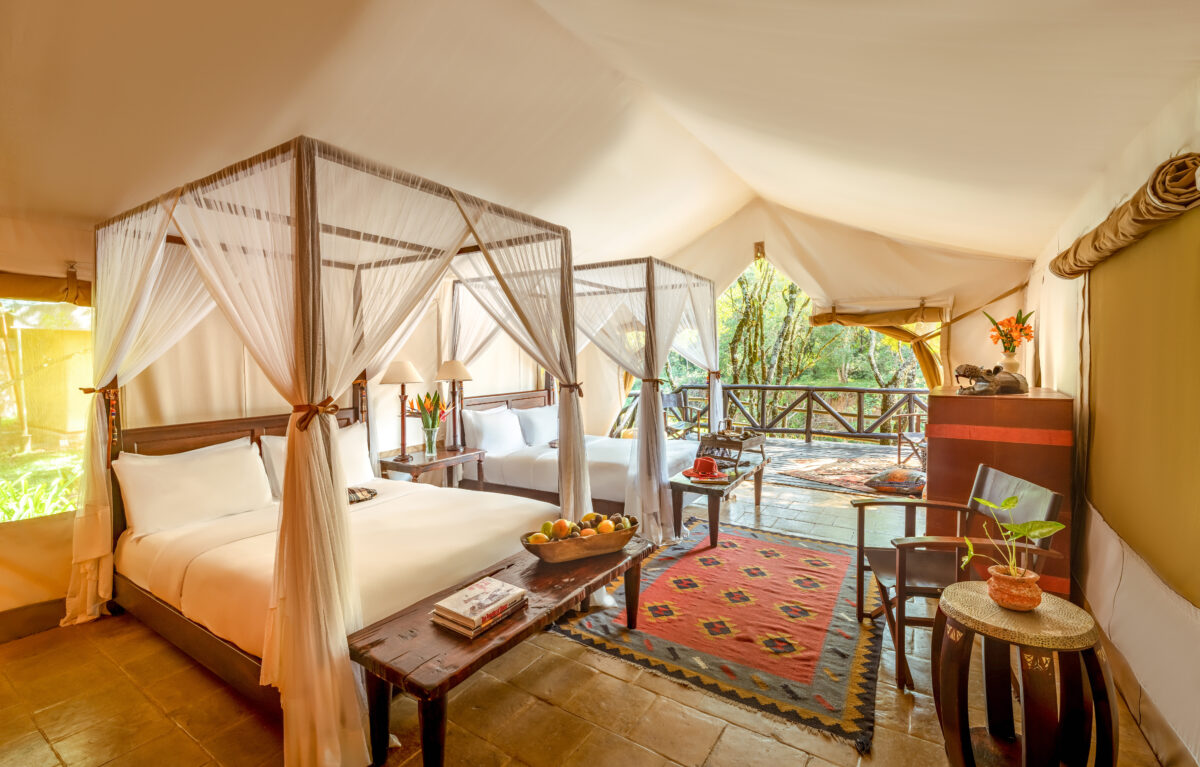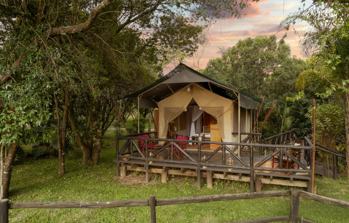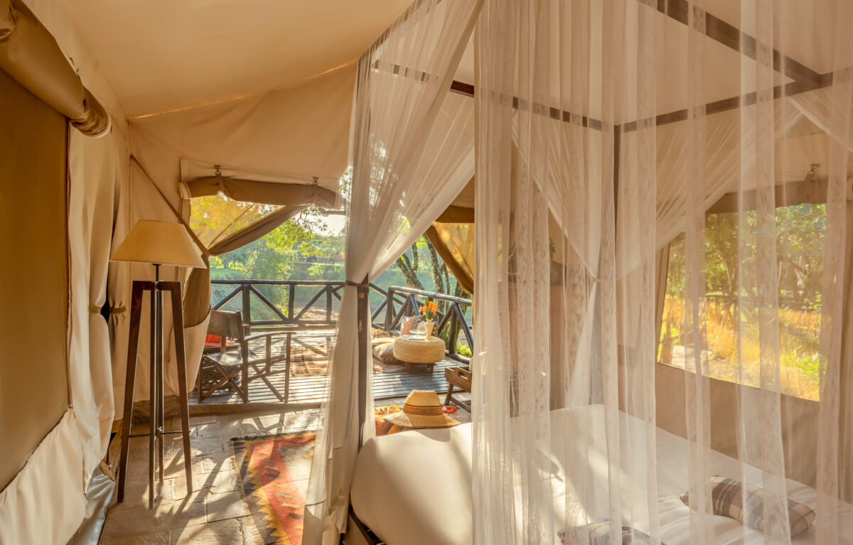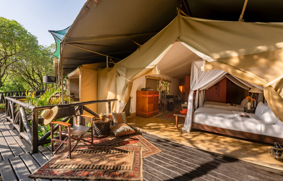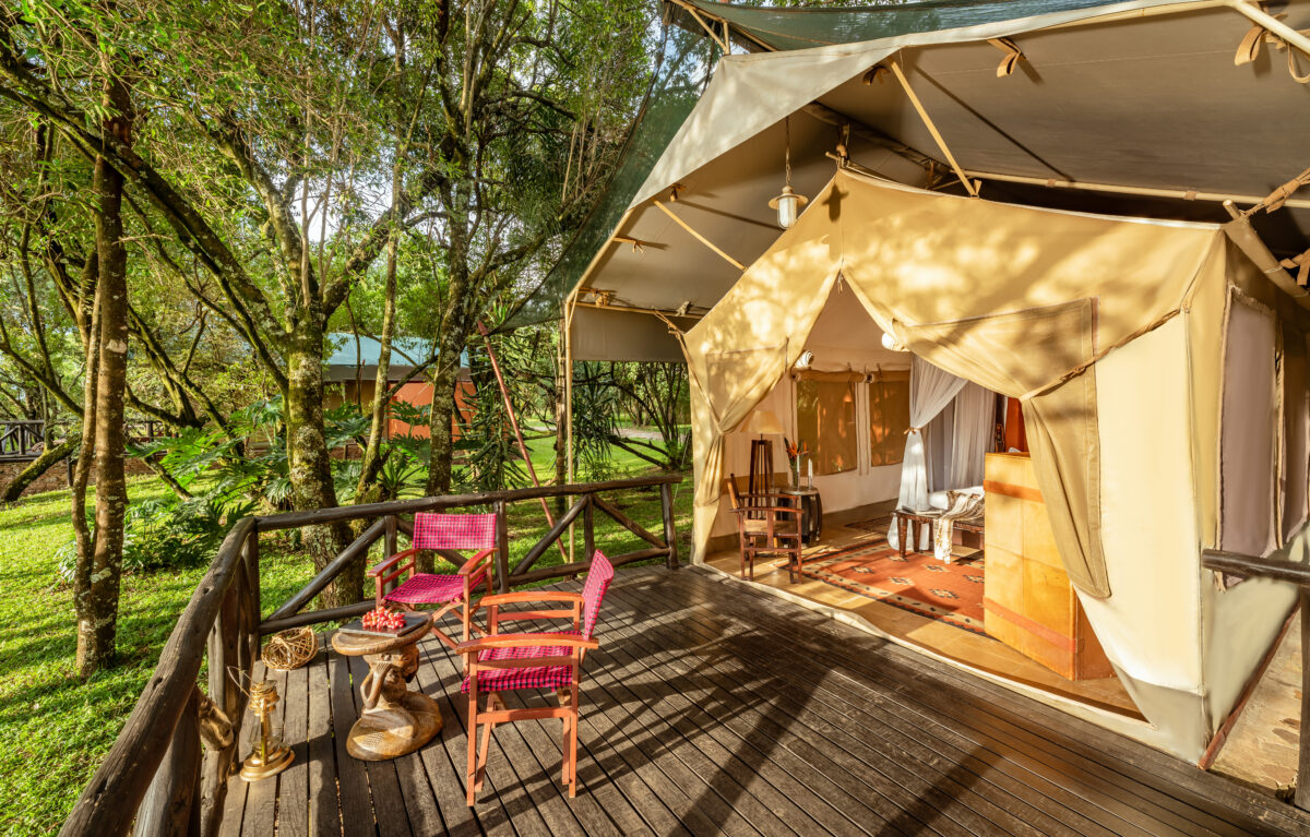 The Mara Safari Club—situated in the northwest of the Maasai Mara at the foot of the Aitong Hills—is your base for adventure in this reserve. Built on an ox-bow of the Mara River, all luxury en-suite tents have their own private game viewing verandas with a view of the hippo-filled river. The gentle chortling of the hippo pods in the water will soothe you to sleep each night in your luxurious four-poster bed, with pillow-top mattresses and fine linens. You awake to coffee or tea in bed and a gentle breeze buffeting the canvas walls of your tent, in which you are snug and well-situated, with oriental rugs, wooden floors, and antique furniture.