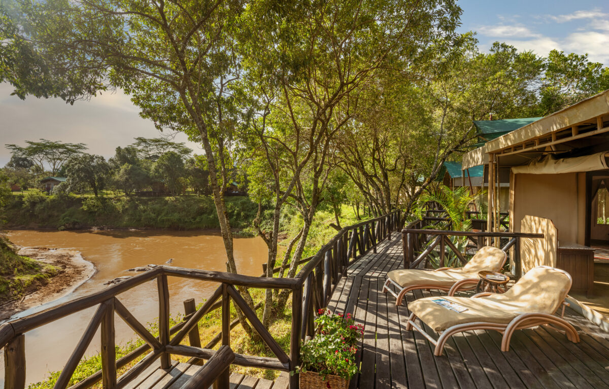 Our favourite afternoon activity here is to sit on the deck with a cocktail and watch the pods of hippos that make the Mara River their home. These fascinating creatures chortle and splash in the water, interacting with each other while keeping a respectable distance between them and the families of crocodiles lining the banks. Curled up in your chair, you easily become engrossed in their behaviours, and a whole afternoon can be whiled away observing these strangely lovely creatures.