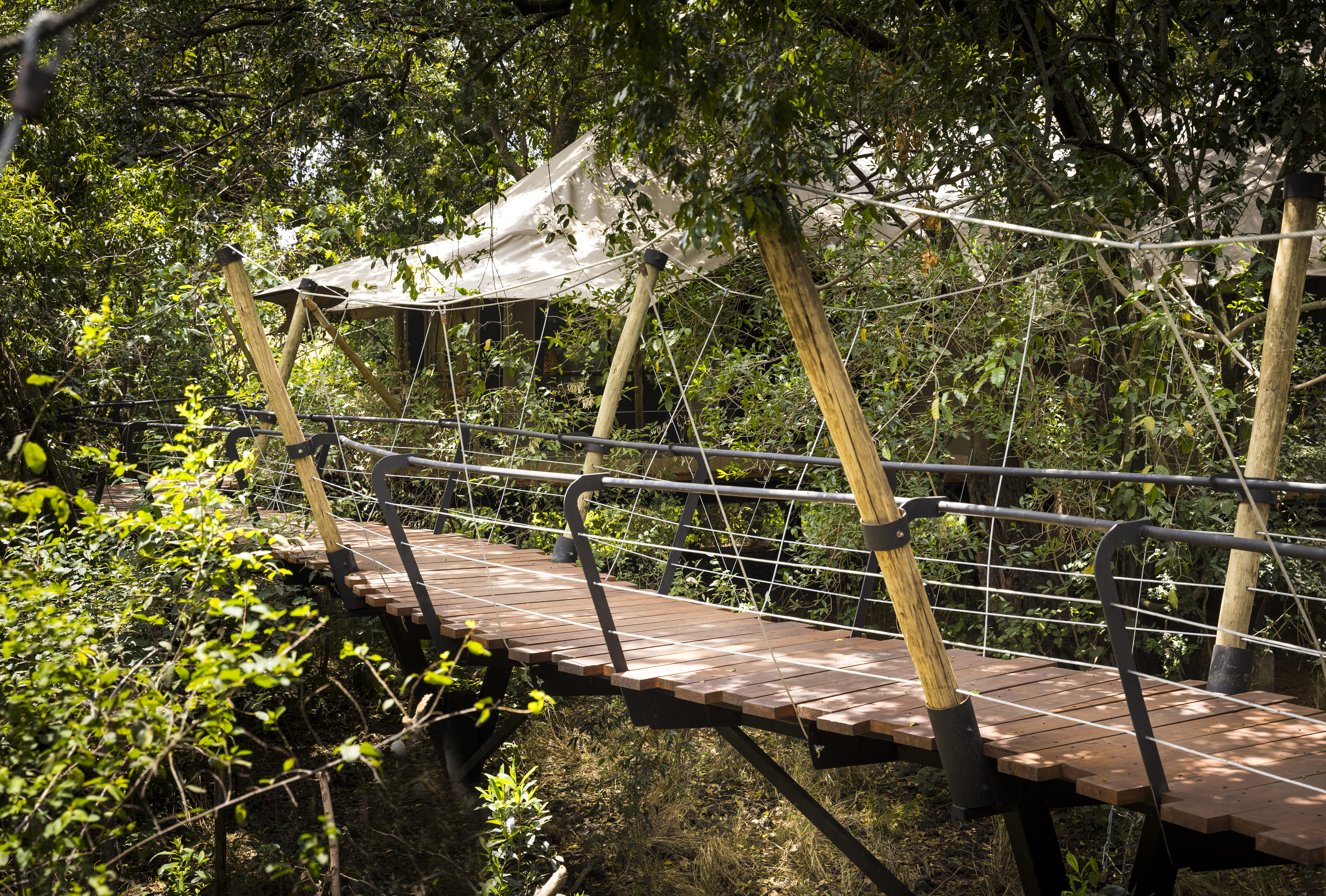 Mara Toto Tree Camp, a beloved project by wildlife photography and conservation luminaries Derek and Beverly Joubert, of Great Plains Conservation, is indeed such a place. Almost completely hidden from sight, this abode is accessed by a walkway that slopes up from the ground into a leafy canopy—and there, a comfortable sanctuary awaits. With our Micato Safari Director by our side, we become fully immersed into the wild beauty of Kenya’s Maasai Mara.