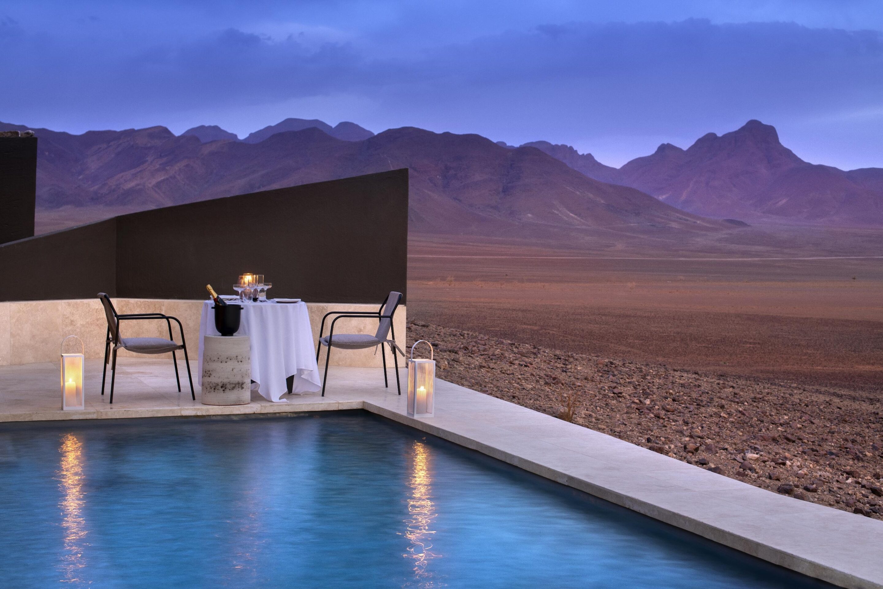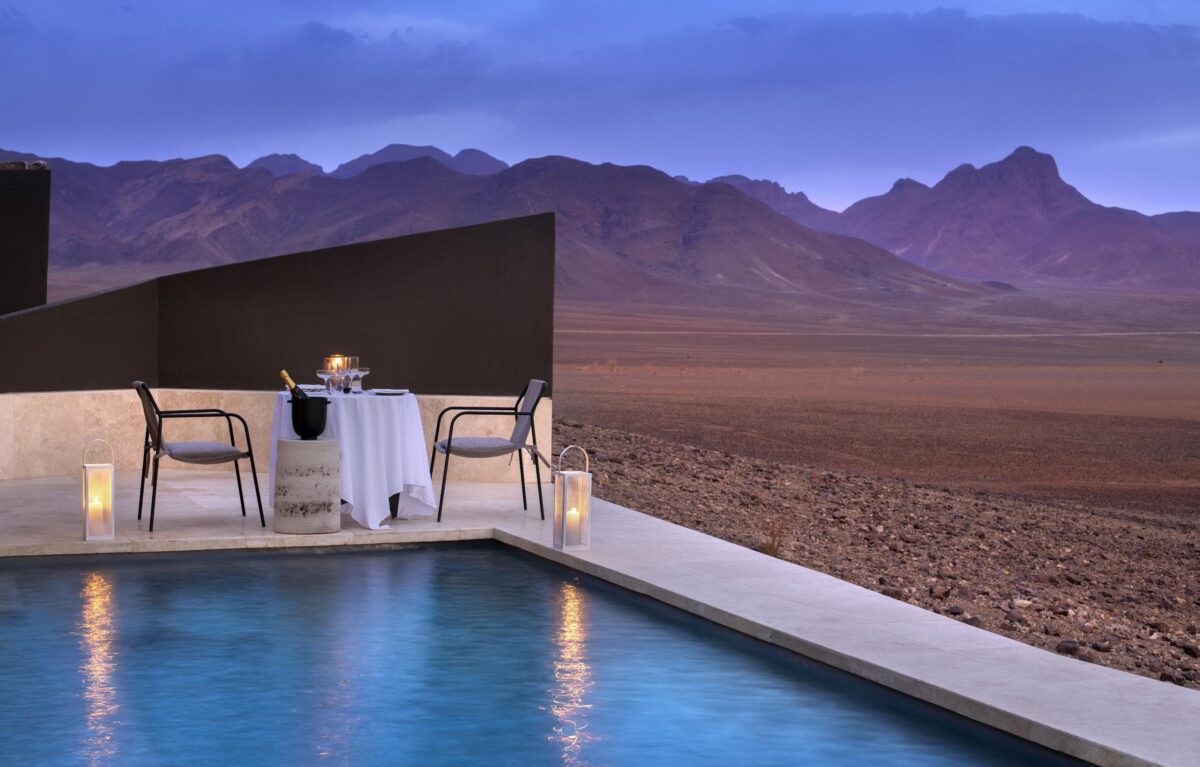 In the heart of the wild Namib Desert, where the sands shift in hues of ochre, sienna, orange, and gold, &Beyond Sossusvlei Desert Lodge welcomes guests in bold avant-garde style. Located in a 31,420-acre private reserve, this retreat is a place where the sunrise glows neon, and the nighttime constellations dazzle us with their brilliance. And the wild game! Elegant oryx and elusive rosetted leopards, mountain zebras and flamboyant ostrich: all have a part to play here amongst the dunes. These natural wonders provide a stunning backdrop to the sophisticated comfort of &Beyond Sossusvlei Desert Lodge. From each suite’s private plunge pool and skylight, to the walk-in wine cellar and an observatory helmed by a resident astronomer, at this desert oasis, hospitality and adventure go hand in hand.