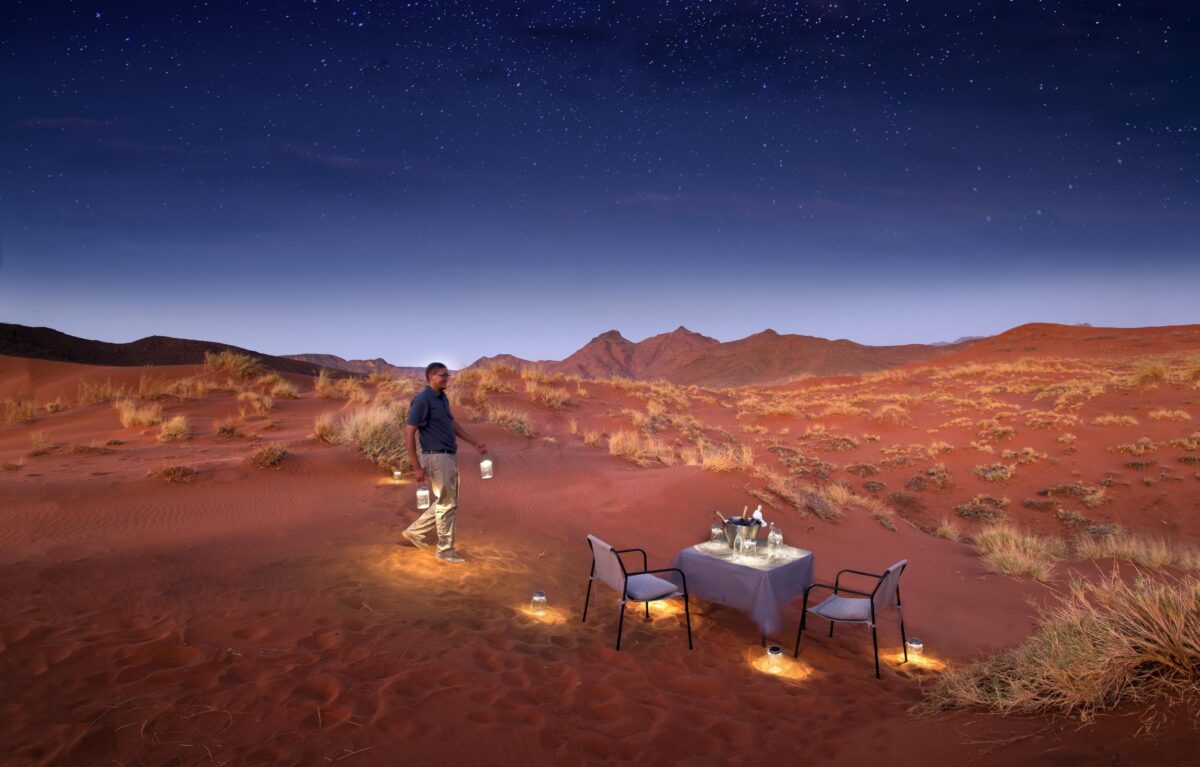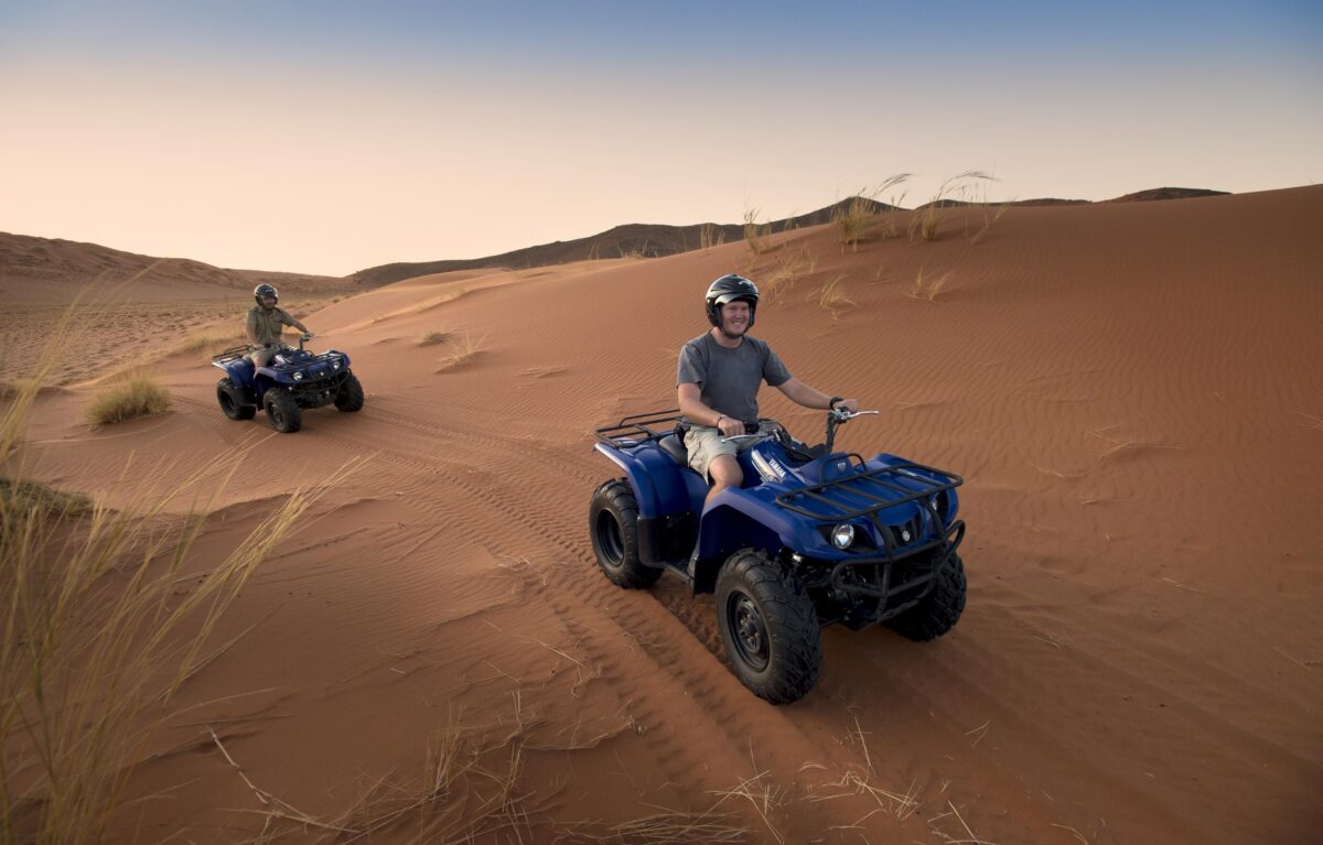 In search of rich game-viewing we’ll set off each day on game drives with our Micato Safari Director, perhaps turning a bend, arriving to a surprise sundowner in a hidden locale. In our search for flighty springboks and stately oryx we can also take to the sky, welcoming dawn from the height of a hot-air balloon that drifts quietly over the arid terrain. Fast pursuits are welcomed, such as quad-biking and e-bikes, and so too are slower adventures: spending a morning in Sossusvlei National Park, for instance, hiking up the majestic ‘Big Daddy’ sand dune. As daylight wanes, arrive back at the lodge for a flight of wine tasting, a blissful massage, or an evening awash in the hues of sunset as we wait for the stars to make their glorious debut.