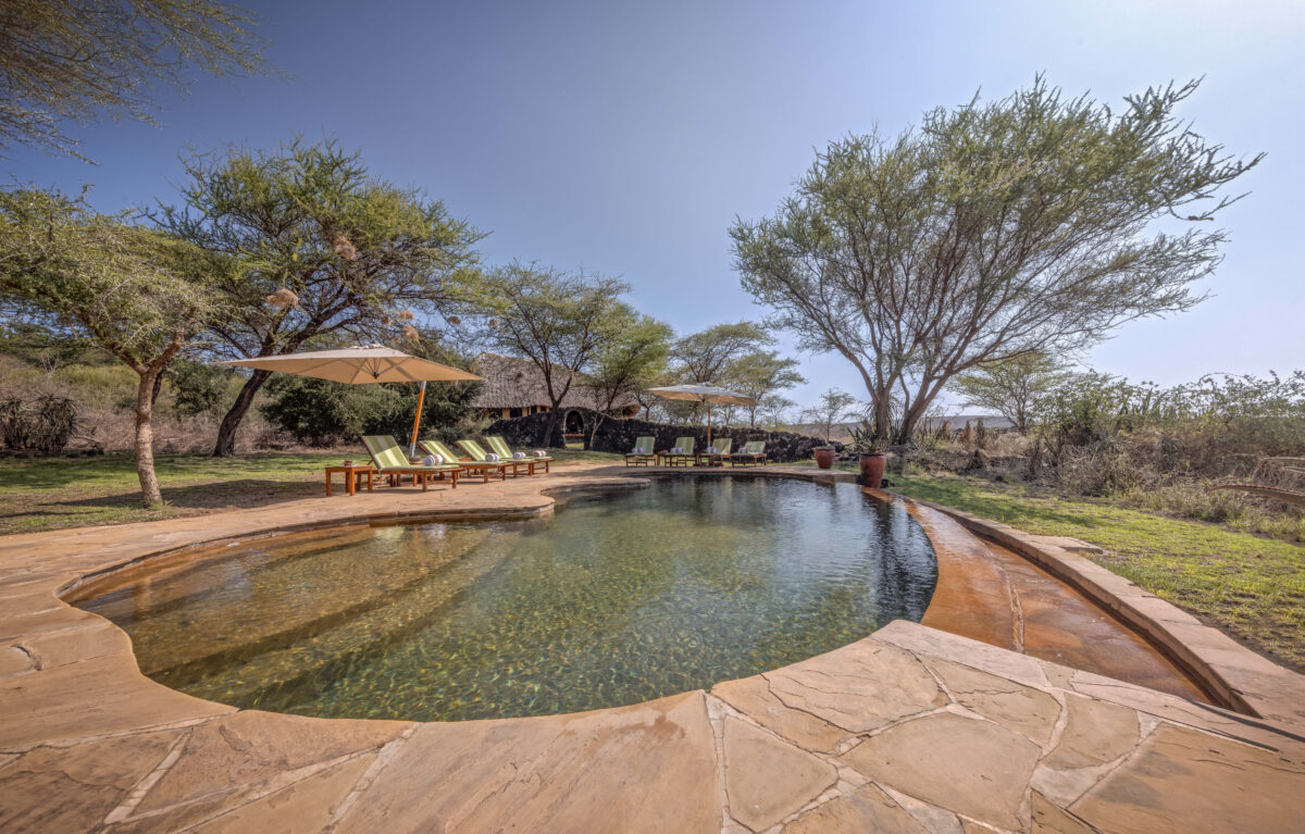 Game viewing out of (and from) Tortilis is quite simply magnificent. Amboseli National Park’s 3,000 plus square miles of varied and animal-rich terrains is right at hand, and we have another 30,000 acres of the Kitirua Conservancy to search for Africa’s signature animals. As always, we’re accompanied on our safari drives by our Micato Safari Director, who not only knows the habits and personalities of the elephants (Amboseli’s population is one of the world’s largest), zebras, balletic antelopes, Cape buffalos, leopards, and, amongst exhilarating etceteras, lions, the sight of which, Isak Dinesen wrote, “goes straight to the heart.” Our Safari Director is on hearty terms with the local Maasai people, whose villages we can visit in rich, respectful cultural and mutual fun. Tortilis’ swimming pool is always handy for post-game drive refreshment, and bush breakfasts, massages, and idyllic sundowners round out a robust but relaxing African experience.