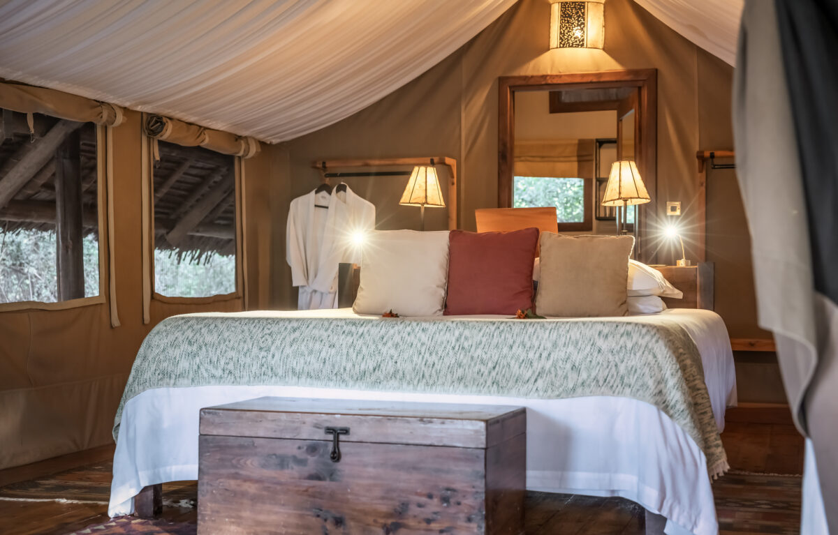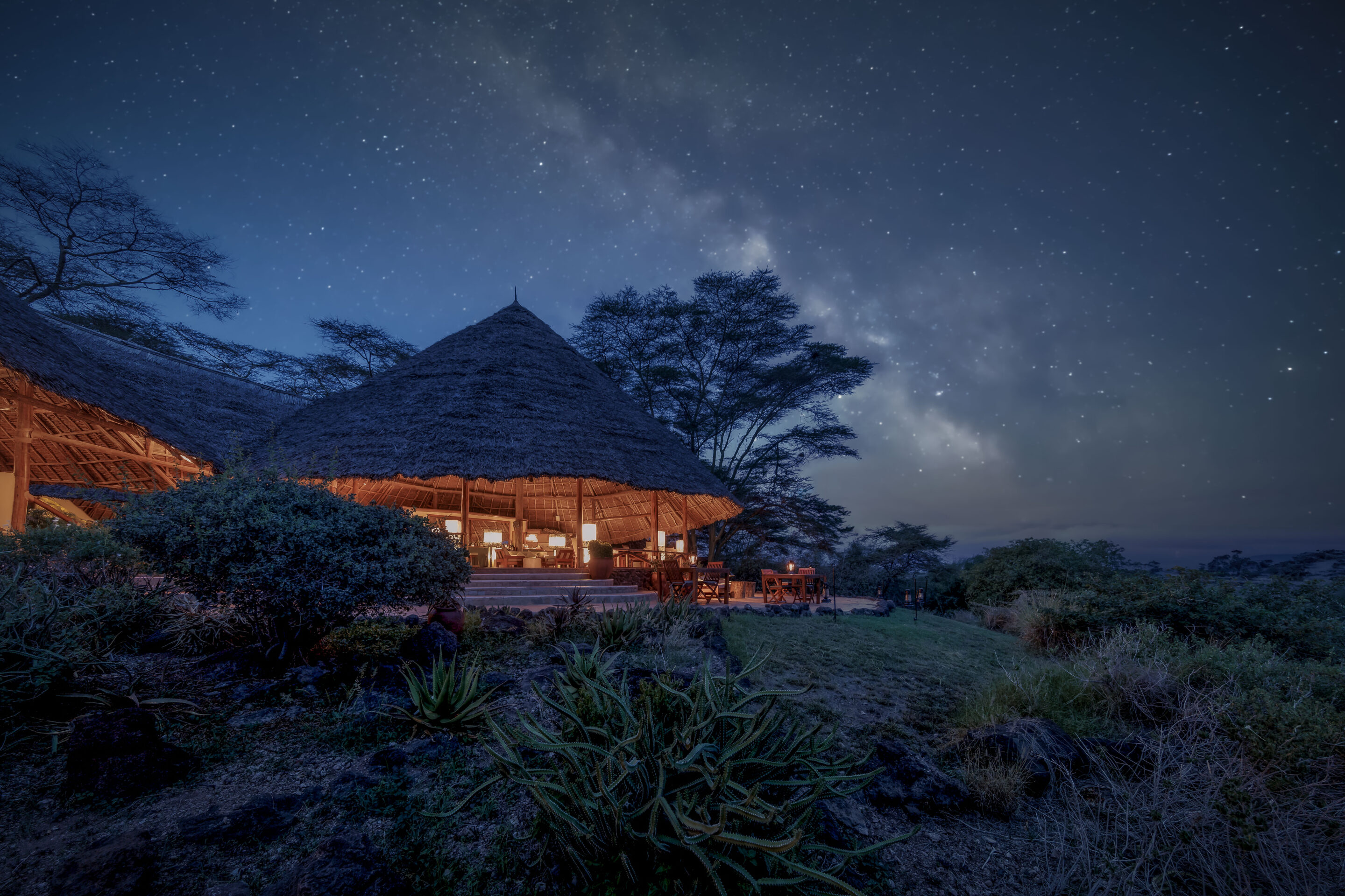 Tortilis’ 15 tents are bright, airy, blessed with grand views of peacefully looming Kilimanjaro —and each is out of view of the others, adding to the camp’s intimate aura. We’re fond of saying that these very permanent and modern tents resemble the tents of our youth like a Piper Cub resembles the latest Gulfstream jet, and this is resoundingly true here at Tortilis. Each tent has a thatched roof veranda from which we can gaze out at the huge mountain and the animals who frequent the plains that lie below. We should also give a satisfied shout-out to Tortilis’ exceptionally fresh and exuberantly prepared cuisine.