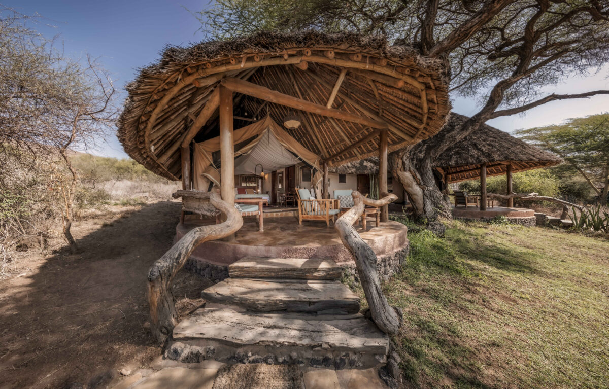 We’ll talk about Tortilis’ serenely superb accommodations and its many activities a little below, but here let’s highlight two notable features of this forward-looking, backward-inspired camp. First, it’s one of the first camps its size to be 100% solar-powered (with its solar panels cleverly hidden from view). Second, even more importantly, Tortilis is a leader of the burgeoning East African conservancy movement; it pays substantial rents to the local Maasai, who own the land, and is in constant partnership with them in ensuring the health of the Kitirua Conservancy, a vital 30,000 acre wildlife corridor bridging Amboseli in Kenya with the Tanzania gamelands to the south. Our Tortilis guests are very much part of African solutions, one more source of the camp’s deep appeal.