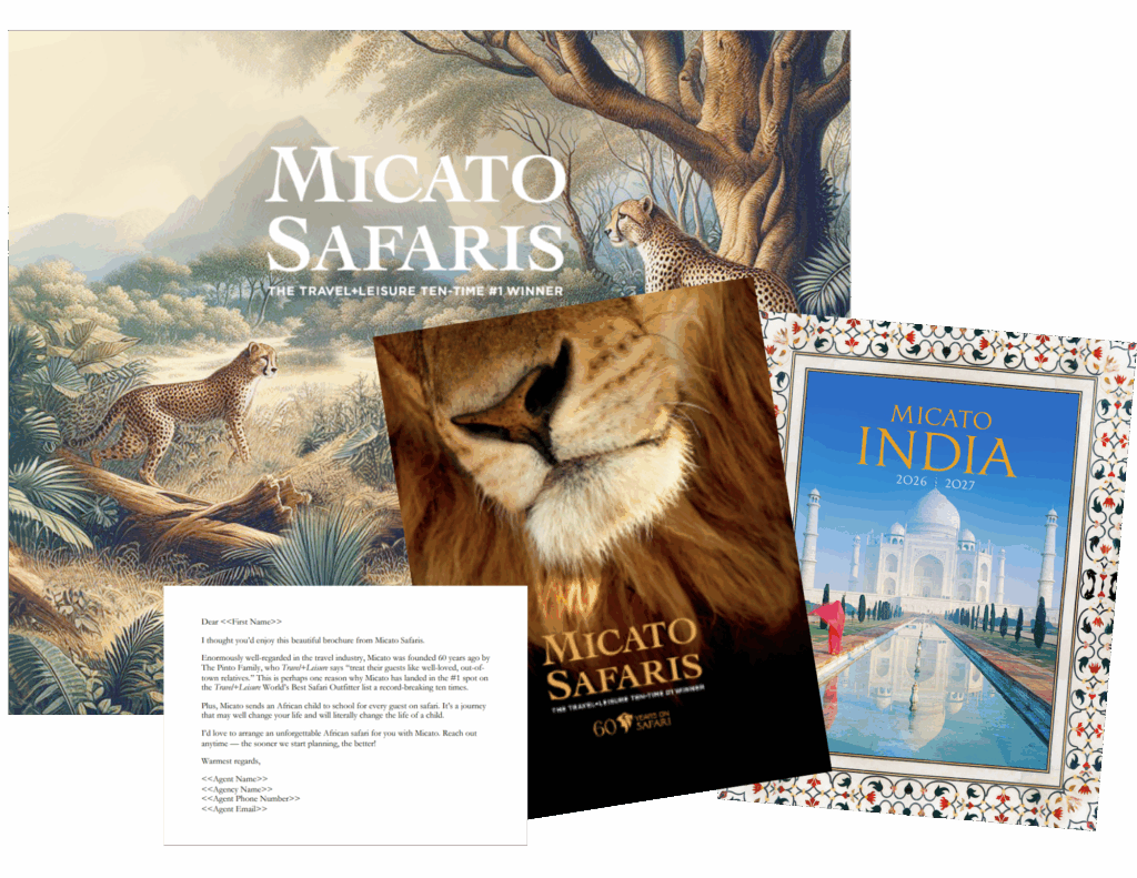 Your prompting me to do a Micato Profit Generator mailing did spur on my client to book his lifetime family trip to Africa. His family still talks about that trip, which was to celebrate his 80th birthday. The brochure is rich with information, amazing pictures and ideas that inspire my clients to take that trip of a lifetime.Stephanie Durst, Travel Specialist, Protravel